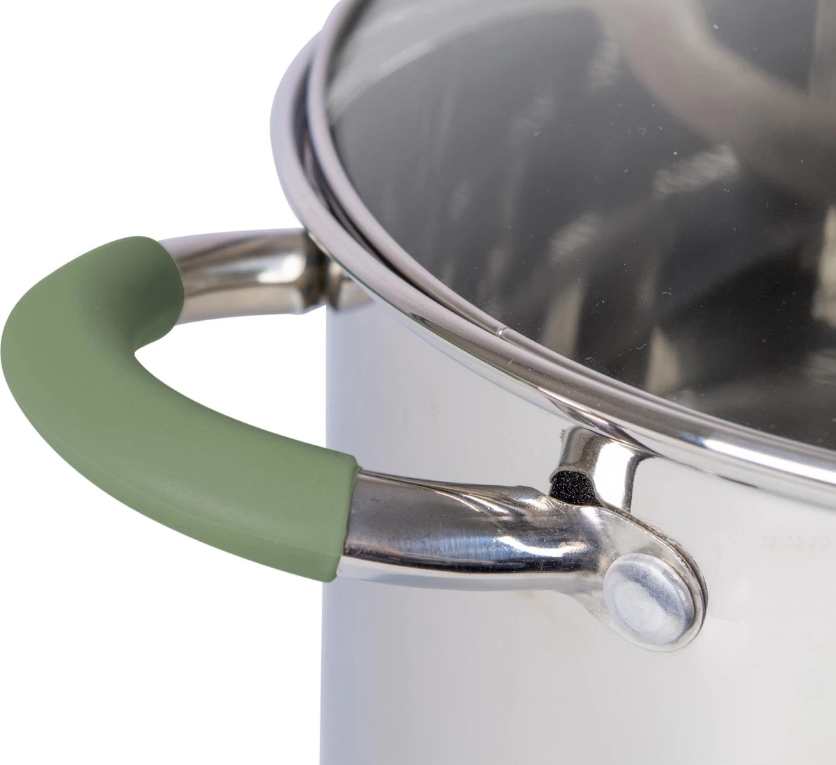 Een sterke 3-delige RVS pannenset. Deze hoge kookpannen zijn voorzien van stevige en hittebestendige handgrepen en een hittebestendige knop op het deksel. Deze smalle en hoge pannen zijn bij uitstek geschikt voor de beperkte ruimte op gaskomforen. Te gebruiken op de warmtebronnen gas, keramisch en elektrisch. Afmetingen (Øxh): 14×13, 16×15 en 18×17 cm. Inhoud: 2, 3 en 4,3 liter.