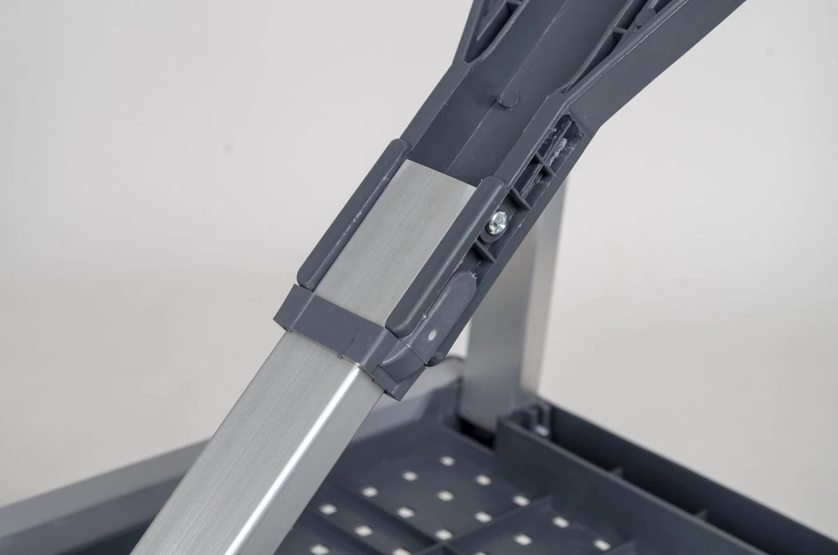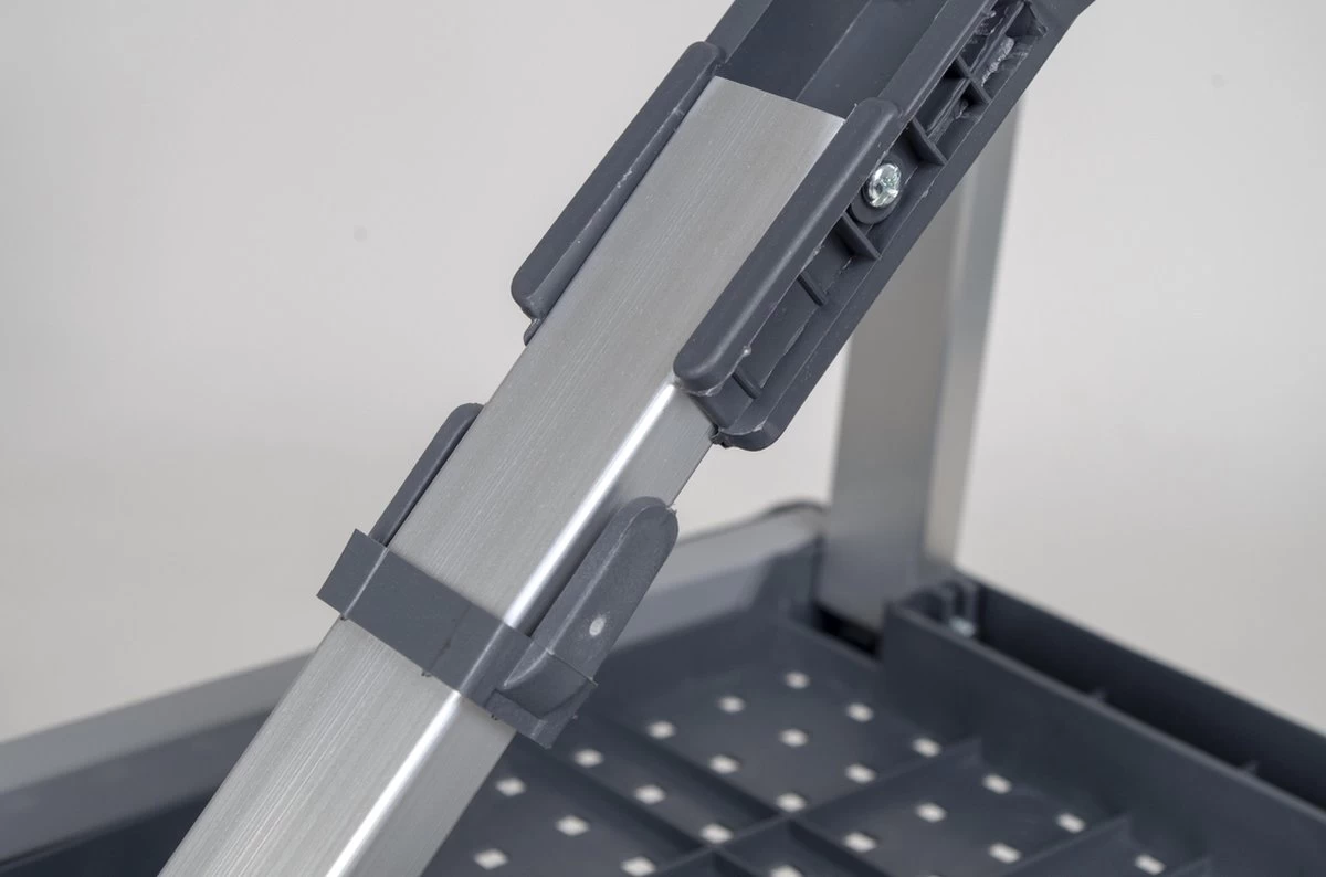 - De tafel beschikt over een stevig metalen frame met ABS tafelblad.