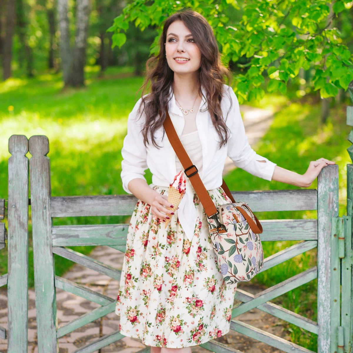 Brisby 4 Laags Geïsoleerde Koeltas – Lunchtas 7 liter – Witte Bloem – Lunchtas voor onderweg – Inclusief schouderband – 2 gratis koelelementen van 200 ML.