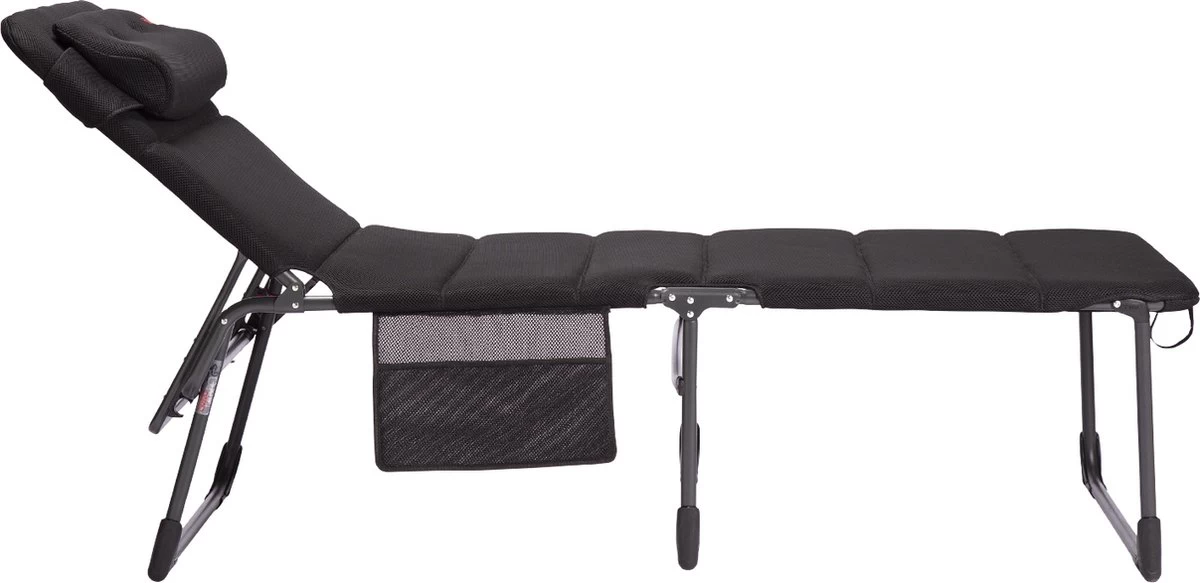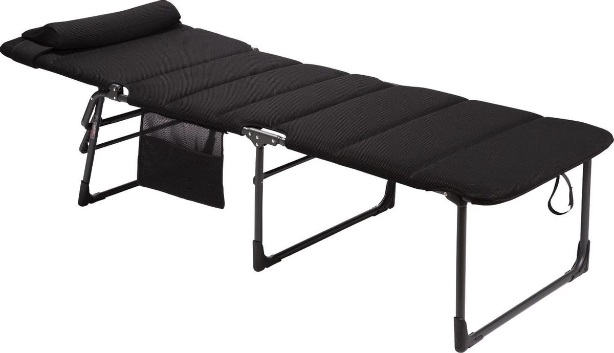 Een handig en één van de meest comfortabele ligbedden. Dit bed is volledig 3D gepolsterd en voorzien van een hoofdkussen voor een maximaal lig comfort. Door de open 3D celstructuur houdt het gepolsterde doek geen vocht vast en droogt het sneller dan een traditionele schuimvulling. Dit ligbed is extra breed en heeft een makkelijke in- en uitstap. Aan de zijkant bevindt zich een handige organizer voor het opbergen van een boek, tijdschriften, een mobiel etc. Na gebruik is dit bed snel en eenvoudig zeer plat in te klappen.