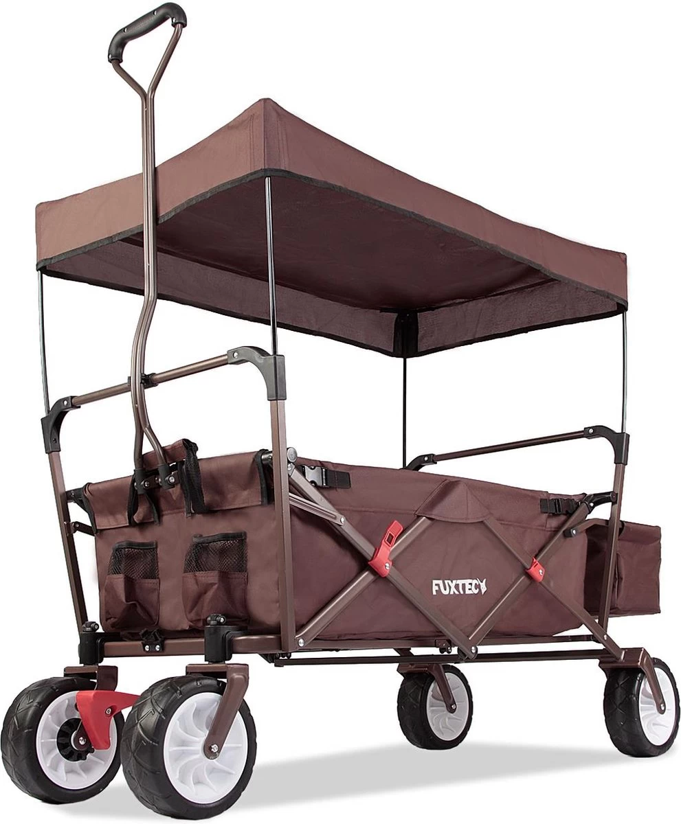 De Bolderkar uit de CT-serie van FUXTEC is een echte allrounder. De brede banden en de extra sterke remmen maken de FUXTEC CT350 de perfecte strand- en outdoorgenoot voor elk gezin. Ondanks het hoge laadvermogen van 75 kilo is de wagen zeer gemakkelijk te besturen en te trekken. Het kan in één eenvoudige stap worden opgevouwen om ruimte te besparen. Er wordt een extra beschermhoes meegeleverd voor opslag of transport. Naast het gebruik in de tuin is de FUXTEC CT-serie natuurlijk ook ideaal voor het werken in de tuin, het vervoeren van je aankopen van de auto naar het huis of de bouwplaats. Afhankelijk van uw wensen kan de zonnekap in een paar eenvoudige stappen gemonteerd of gedemonteerd worden. Handdoeken of andere bagage kunnen gemakkelijk worden vervoerd door de grote achtertas. Hij vergezelt je natuurlijk ook op je meivakantie en is de ideale drager voor al je drankjes.