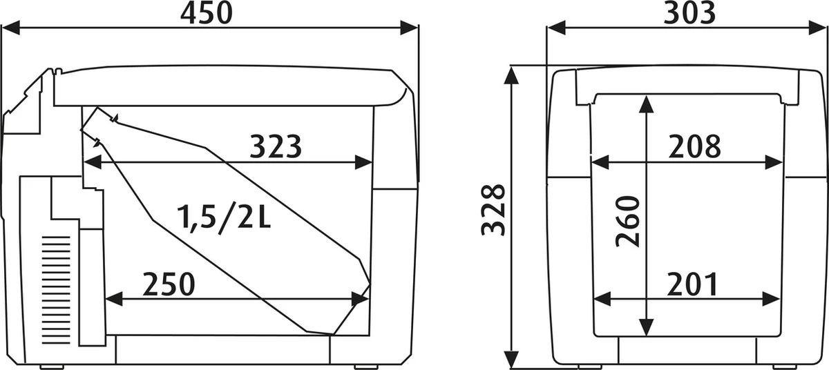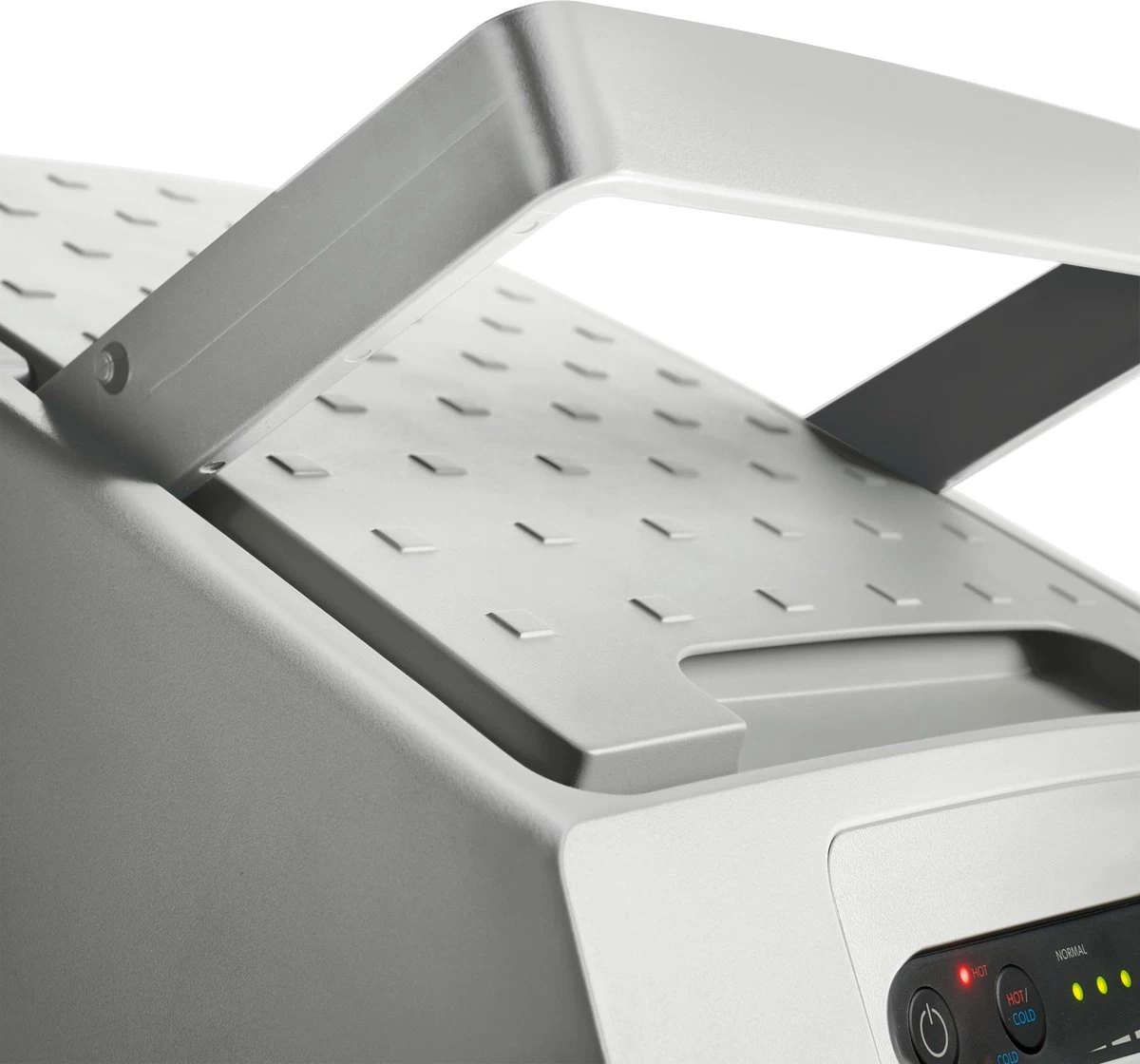 Eigenschappen: * Inhoud: 14 liter * Afmeting: 45 x 32,8 x 30,3 cm * Koelt tot 27 °C onder omgevingstemperatuur * Aansluiting: 12/24 volt en 230 volt * Thermo-elektrisch * Draagbaar * Softtouch bedieningspaneel en digitaal display * Actieve accubeveiliging die voorkomt dat de voertuigaccu te ver ontladen wordt * Beveiliging tegen ompolen voor probleemloze elektrische aansluitingen