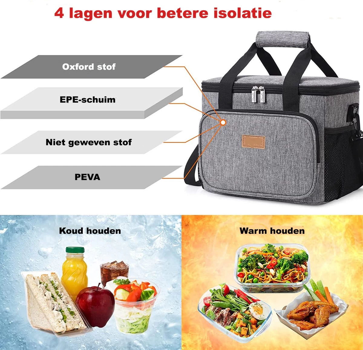 Lunchtas – Koeltas Voor Dames En Heren – Cool Bag – 4 Laags Geïsoleerde Koeltas – Kleine Cooler – Lunch Box – Lunchtas 15 Liter