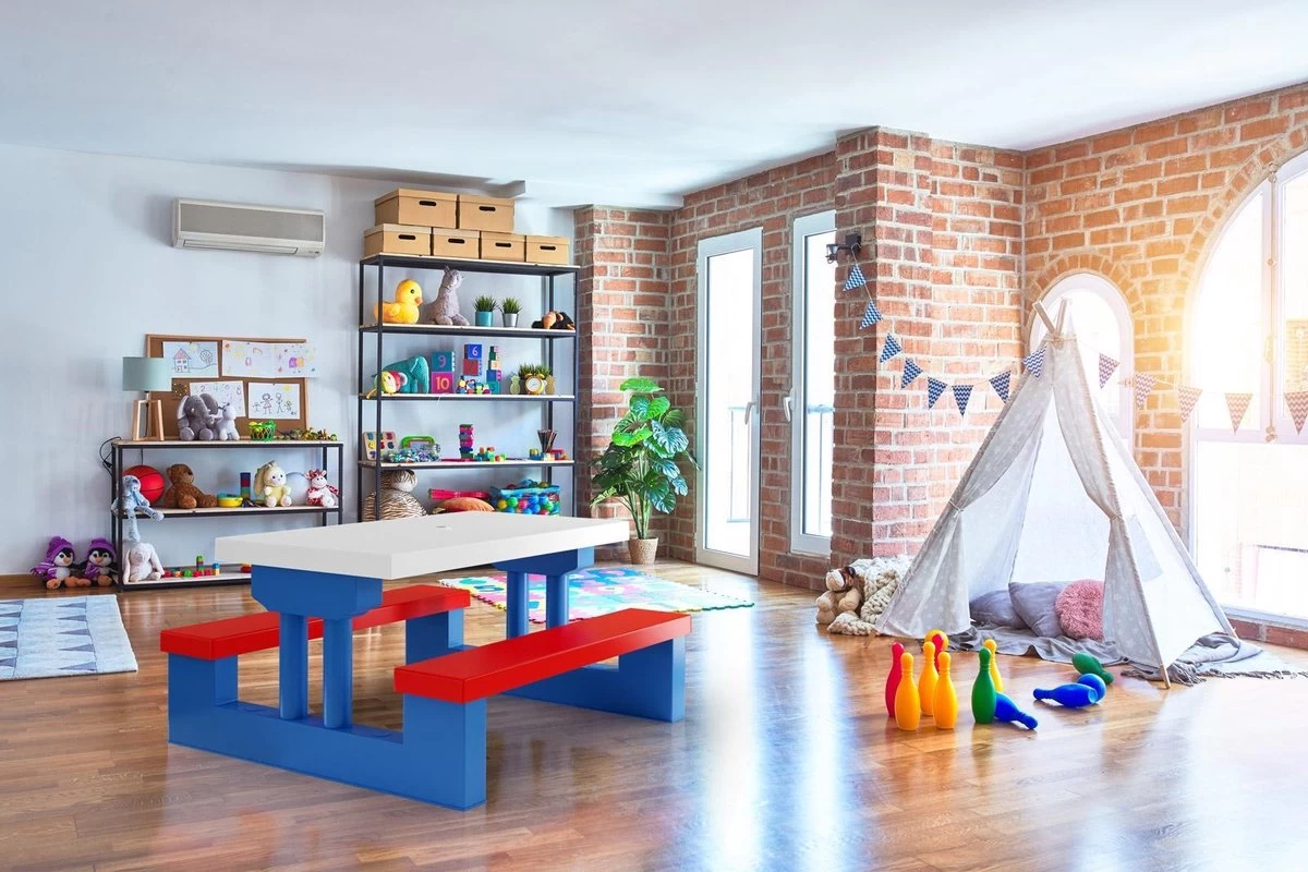 - Tafel met twee vast verbonden banken
