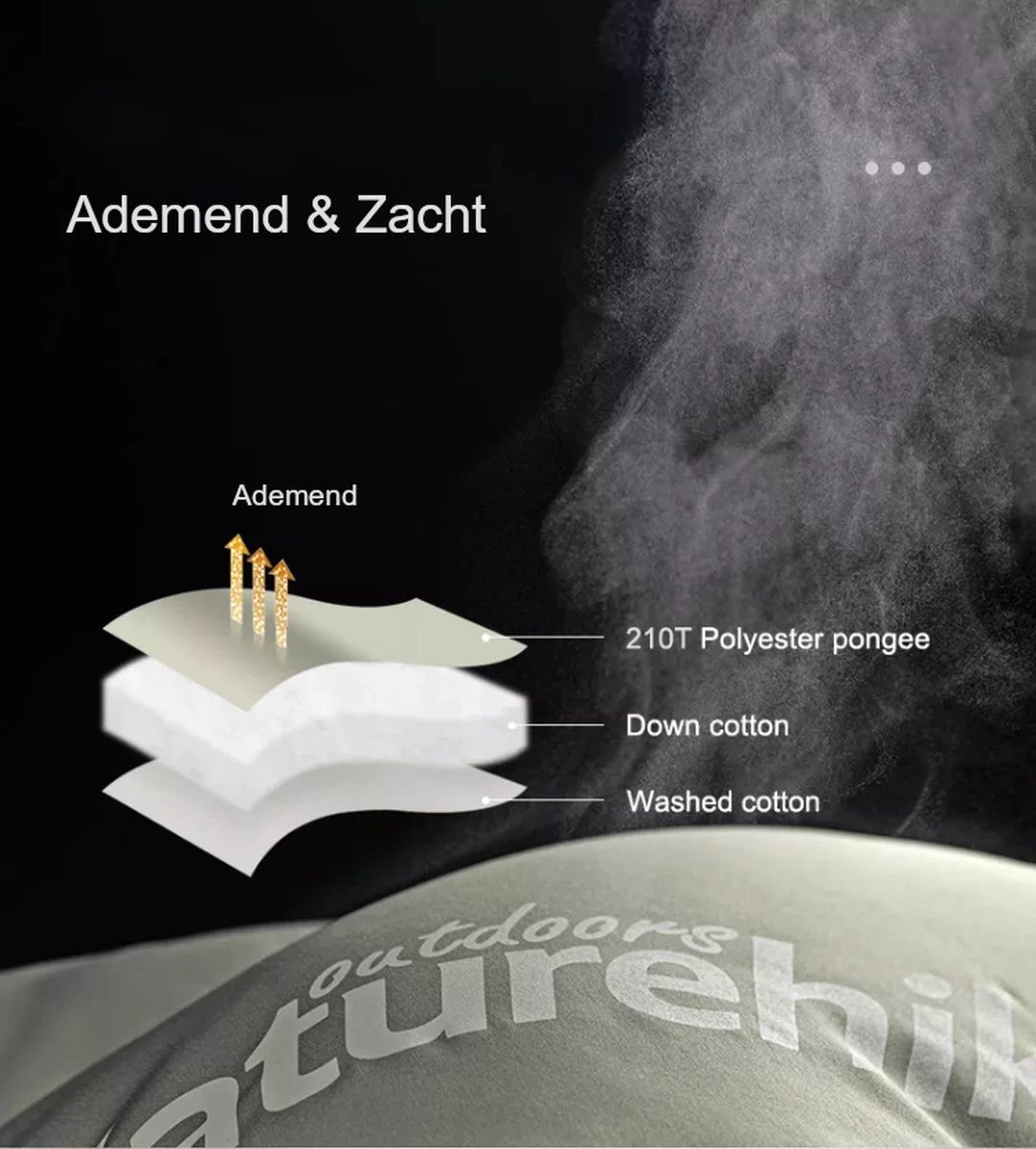 - Ademend vermogen door de dubbele ritssluiting