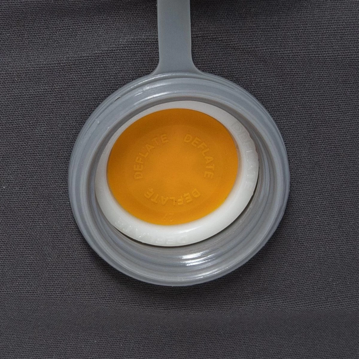 Deze mat heeft een handig groot ventiel waarmee je de mat zowel opblaast als leeg laat lopen. Het ventiel heeft 3 standen: dicht, halfopen of open. De éénwegsfunctie van het ventiel zorgt ervoor dat de lucht bij het opblazen binnen blijft en bij het leeg laten lopen buiten blijft. Je draait ‘m gemakkelijk met je vinger naar de gewenste stand.
