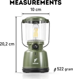 Favour L0818 Retro Camping Lamp Oplaadbaar LED, 320 Lumen, IP64 Waterdicht, Draagbare Kampeerlamp, Tentlamp, Acculamp, Traploos Dimbare Lamp Incl. Kaarslicht-modus, Groen