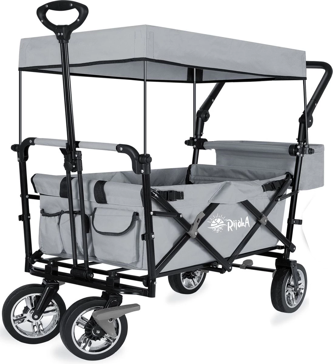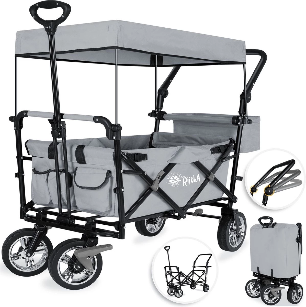 Rijoka Luxe Opvouwbare Bolderkar/Bolderwagen | Met Dakje En Draagtas | Grijs