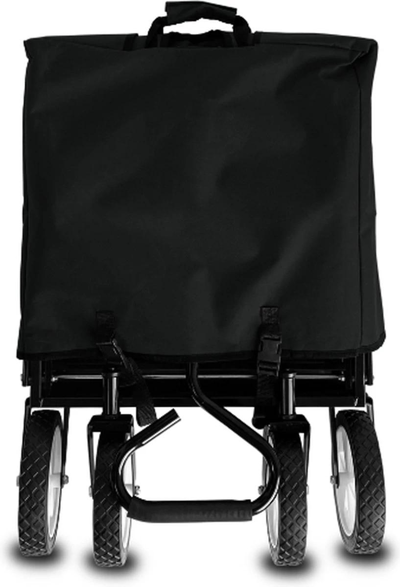 Ook beschikt deze bolderkar over een harde bodem (flexibele plaat verwerkt in de hoes), wat het comfortabeler maakt voor uw kinderen om erin te zitten. Of je nou naar de bossen, strand of op de verharde weg rijdt, hij is overal uitstekend geschikt voor. Wilt u uw bolderkar krasvrij vervoeren of opbergen? Ook geen probleem, door de meegeleverde beschermhoes. De opvouwbare bolderkar is gemaakt van een stevige stalenconstructie. Voor ieder uitstapje is deze bolderkar een must have!