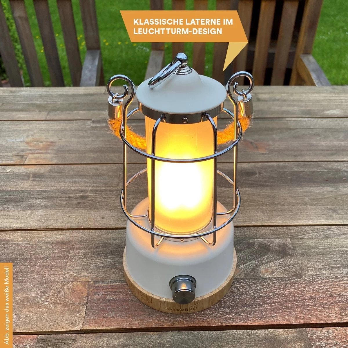 De Kiruna LED-lamp slaat niet alleen op de camping een goed figuur, maar ook in de huiselijke tuin en op het balkon.