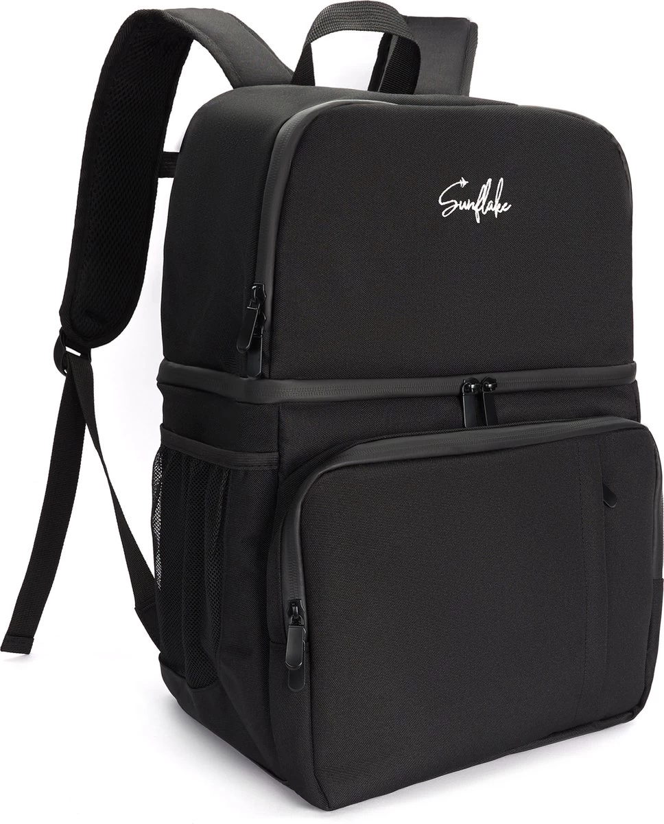 Met zijn zwarte uiterlijk zonder al te veel poespas is deze koeltas van Sunflake een rugzak waar iedereen mee over straat kan. Daarbij is overal aan gedacht met slimme extra opbergvakken zodat je alles wat je mee wilt netjes kan wegsteken én weer snel te pakken hebt.