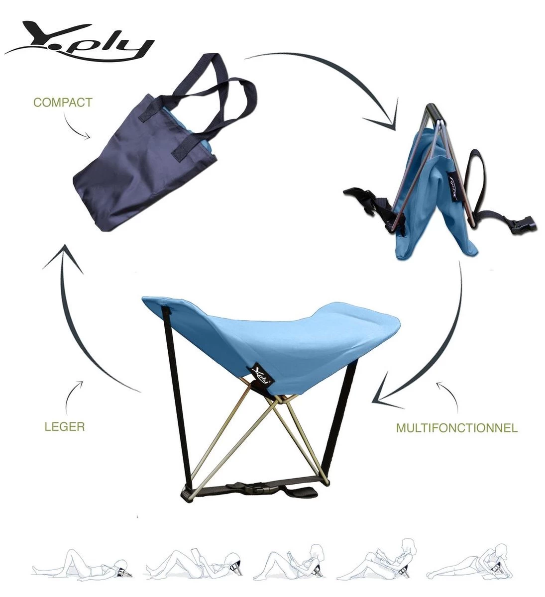 Geen gedoe meer met handdoekjes of een hoopje zand onder je hoofd als je een klein ‘powernapje’ wilt doen of ontspannen een boek wilt lezen. De Y-ply biedt comfort en is de ideale ondersteuning voor je hoofd, rug, voeten of onder je arm. De Y-ply is verstelbaar door de band aan te spannen of juist wat losser te laten, waardoor aangenaam voor iedereen.